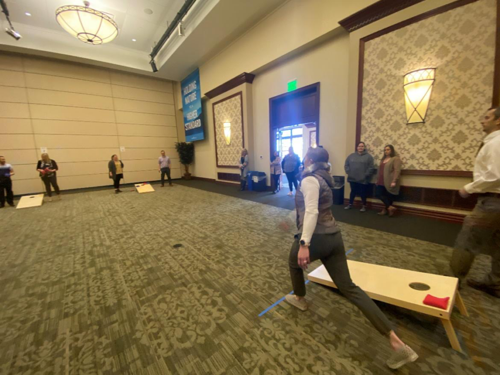 Excitement was soaring high as a large crowd of Melaleuca team members gathered to watch their fellow coworkers compete in the finals of the Melaleuca Indoor Cornhole Tournament.