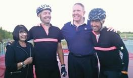 The knowledge his family would be at the finish line got him through the last leg. His 10-year-old son Eliot joined the entourage on his bike for the last 200 yards of the race.